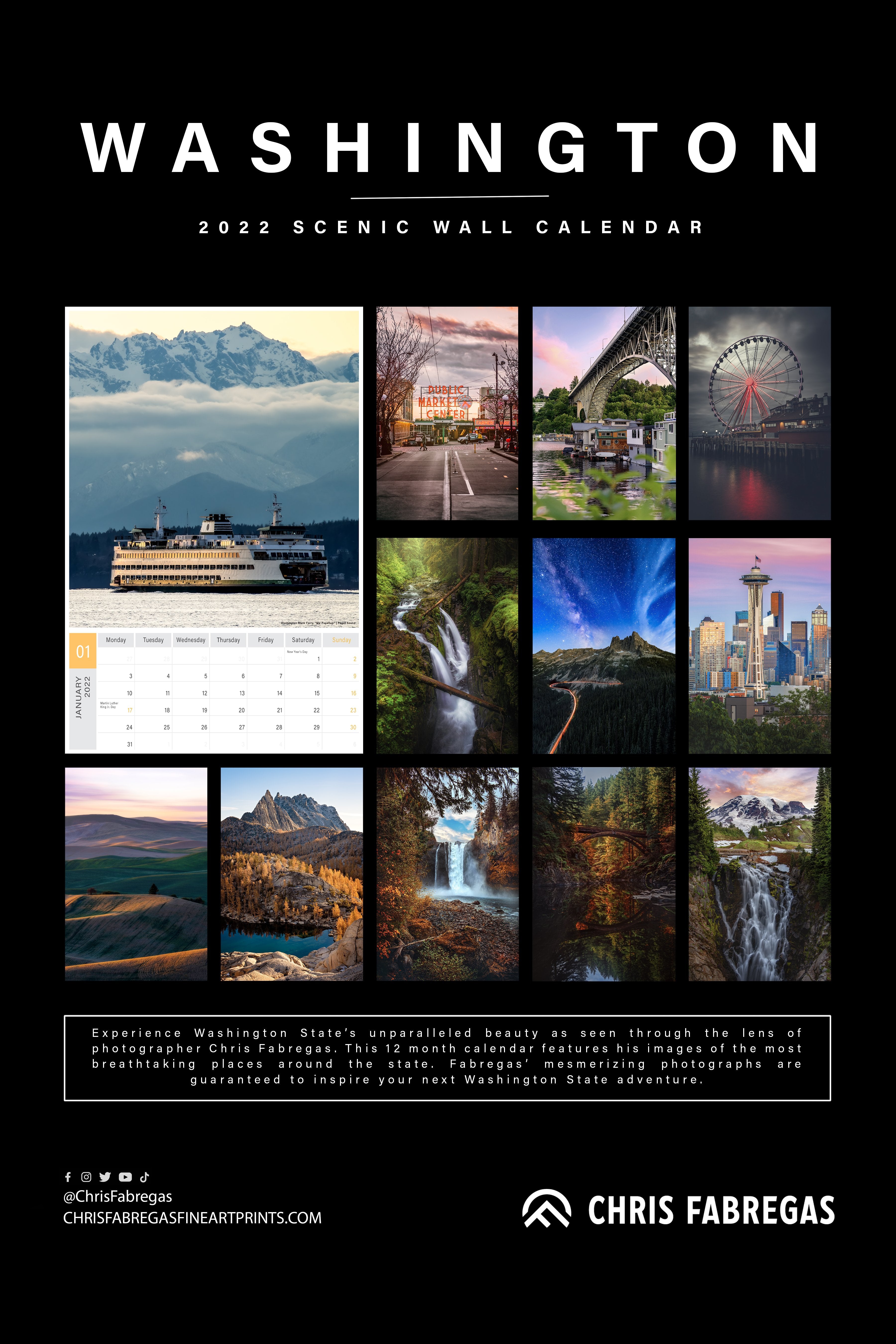 WASHINGTON STATE CALENDAR 2022, Wall Calendar, Seattle Calendar